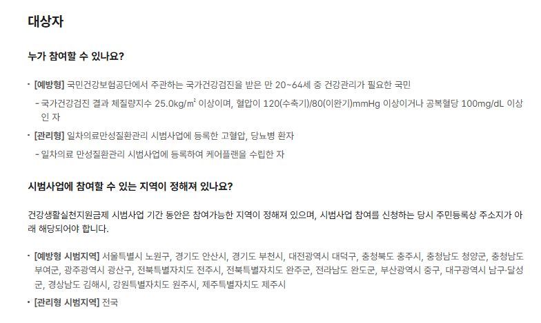 - 주로 고혈압, 당뇨병 등 만성질환자 대상
