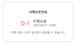 - 예매 개시일: 2025년 8월 27일(수) 오전 10시부터