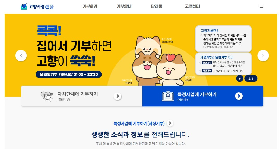 - 고향사랑e음 홈페이지 접속