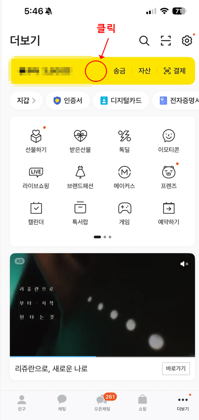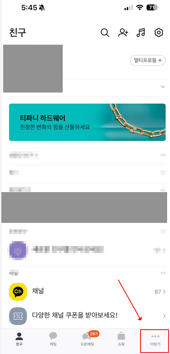 1. 카카오톡 앱 실행 → 우측하단 더보기(...) 클릭