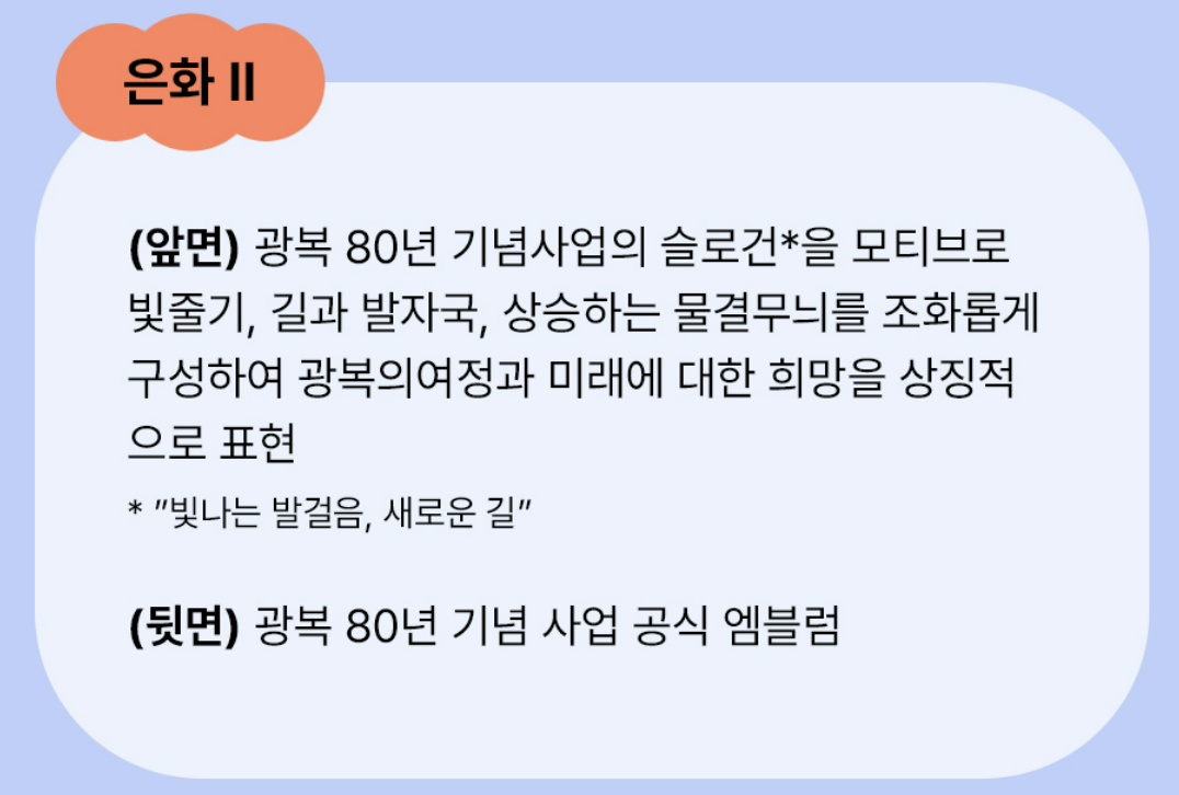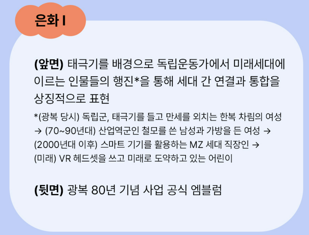 이번 기념주화는 광복의 의미를 계승하고 세대 간 화합과 희망의 메시지를 전파하기 위해 제작되었습니다.