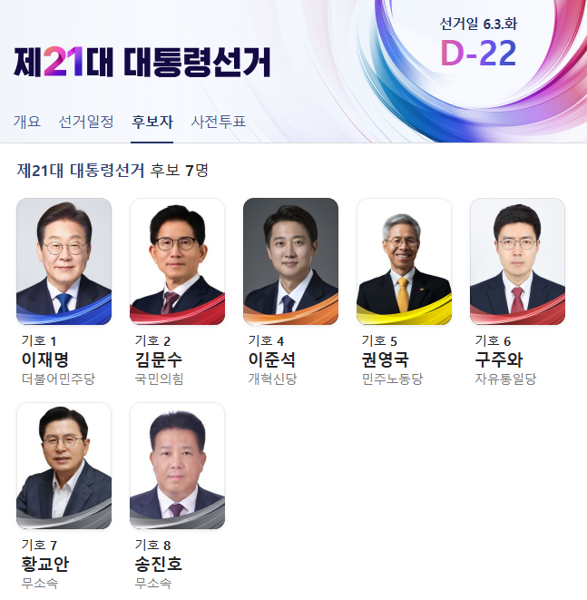 ※ 공식 후보자 정보는 중앙선거관리위원회 홈페이지에서도 확인 가능합니다.