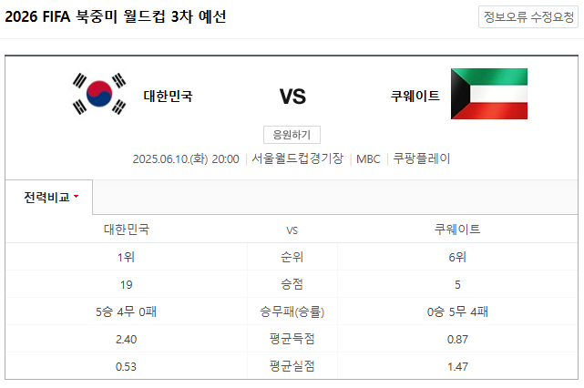 4. 대한민국 vs 쿠웨이트 전력 비교