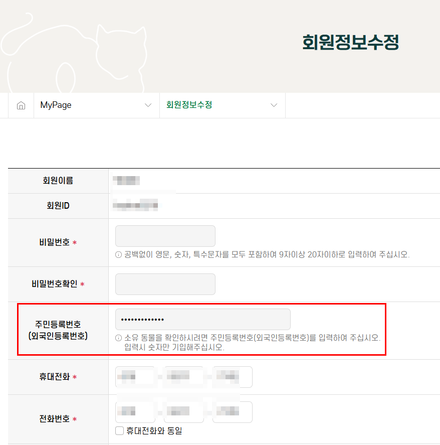 📌 회원가입시에 주민등록번호까지 입력해두면 좋아요