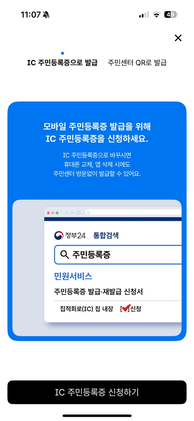 - (IC 주민등록증 없을 시)IC 주민등록증 신청하기로 이동