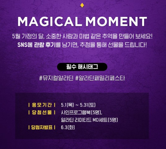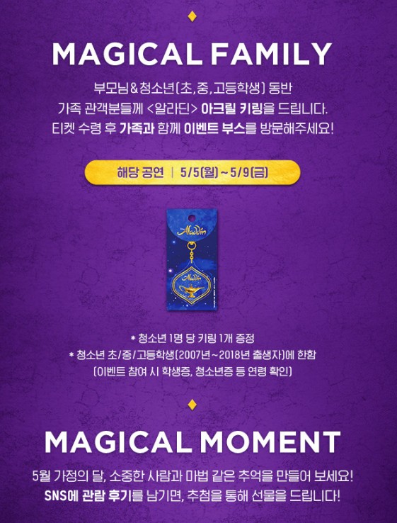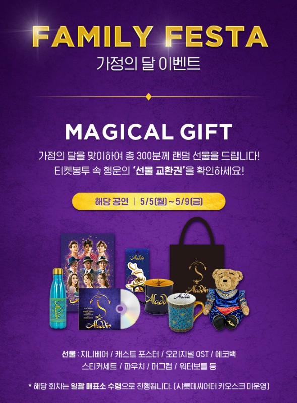 뮤지컬 알라딘은 아이부터 어른까지 모두가 사랑하는 판타지 뮤지컬입니다.