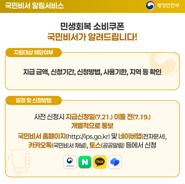 - 7/21부터 신청 필수, 1인 최대 25만 원, 지역 따라 최대 55만 원 가능