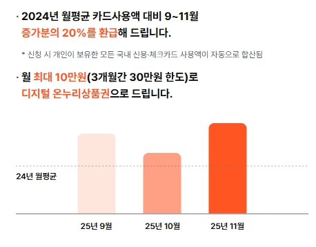 → 올해 9월 150만 원 소비 → 증가 50만 원 → 10만 원 환급