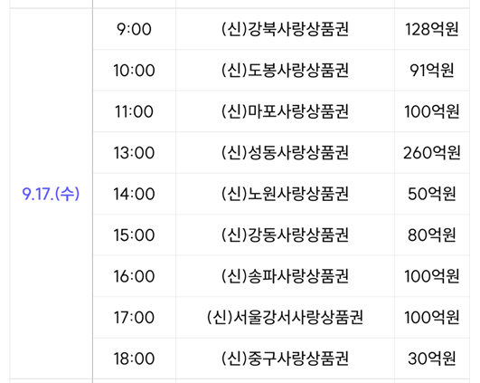 1. 서울사랑상품권 9월 발행일정
