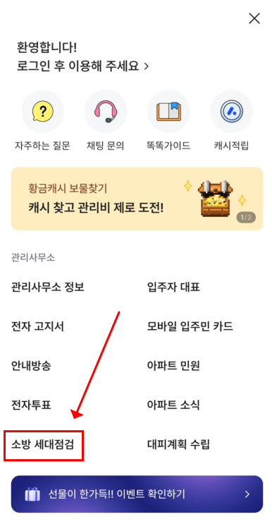 📱 소방 세대점검 메뉴를 따로 제공하고 있습니다.