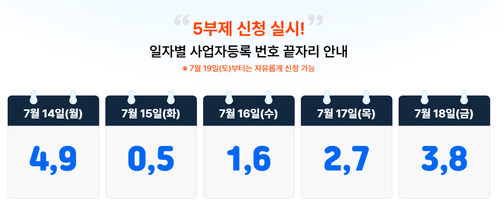 | 날짜 | 신청 대상(사업자등록번호 끝자리) |