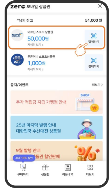 | 사용처 | 제로페이 가맹 체육시설 |