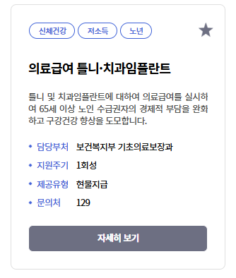 - 치과 혜택: 임플란트 평생 2개까지 건강보험 적용, 틀니는 7년에 한 번 등