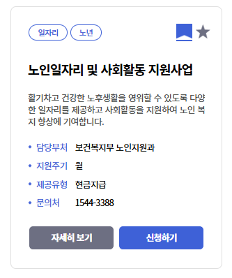 - 신청처: 주민센터, 노인복지관, 노인일자리 포털