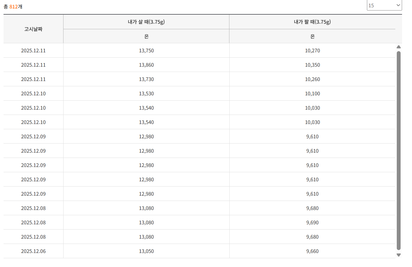 - 은 한돈(3.75g): 약 13,500원대