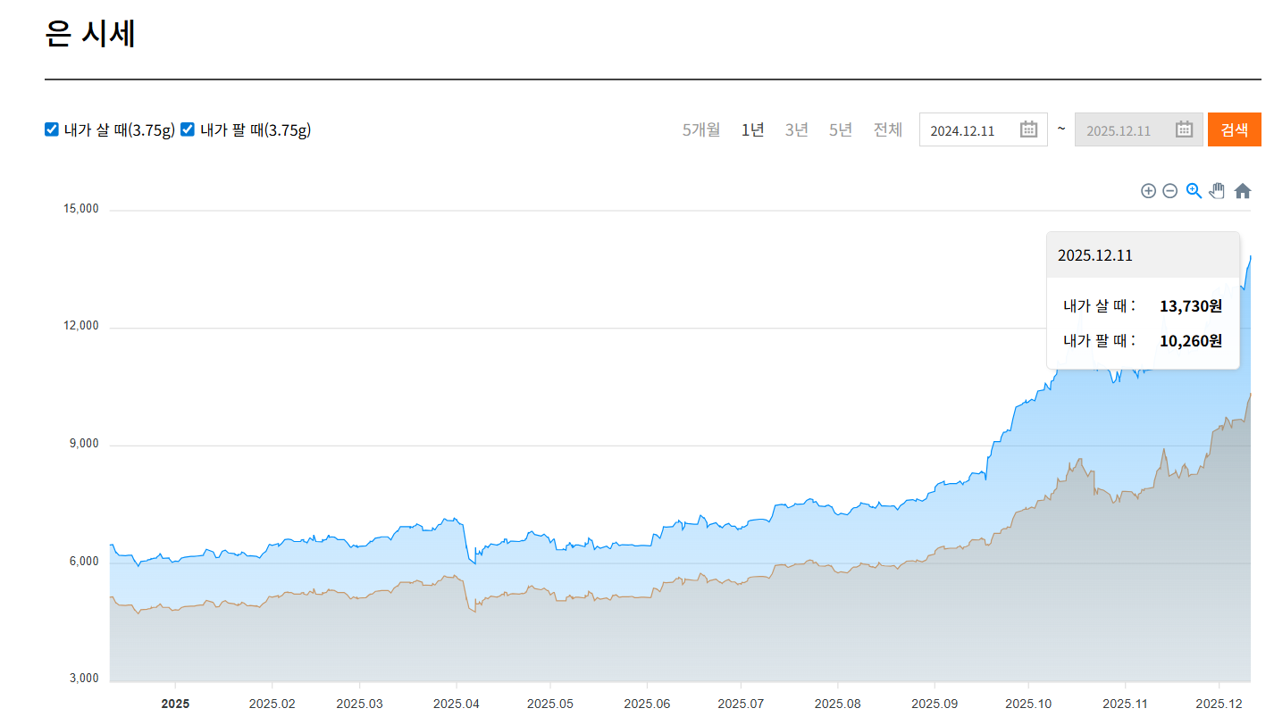 📌 국내 은값 기준(한국금거래소 등):