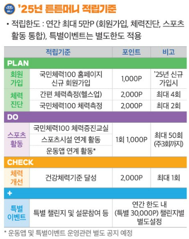 | 적립 항목 | 회원가입 1,000P, 체력측정 5,000P×2회, 운동참여 등 |