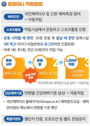 - 국민체력100 홈페이지 가입 → 회원가입 시 1,000포인트 자동 적립