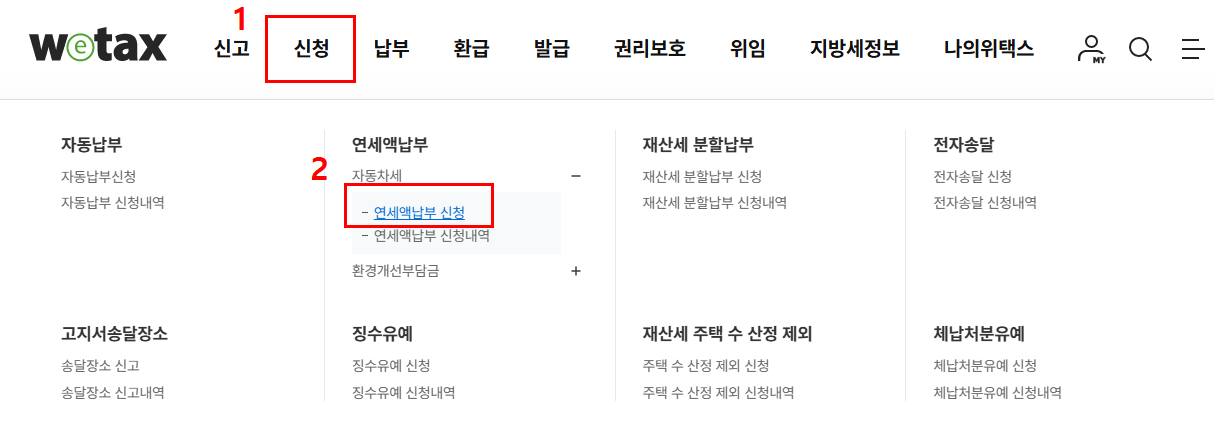 - 위택스 홈페이지 또는 앱에서 신청