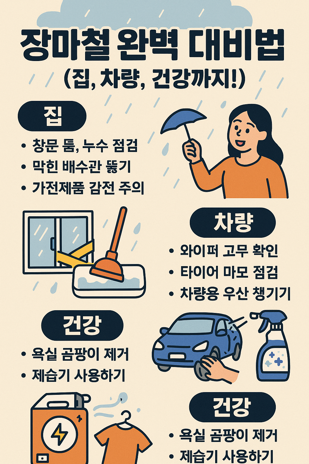 장마철 완벽 대비법 (집, 차량, 건강까지!)