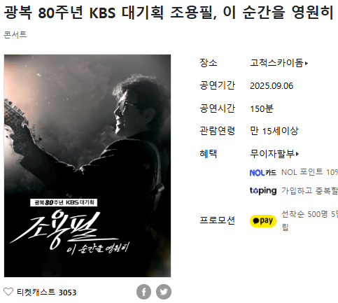 - 공연명: 광복 80주년 KBS 대기획 – 조용필, 이 순간을 영원히