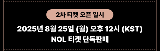 - 2차 예매: 2025년 8월 25일 (월) 낮 12시부터 다시 오픈