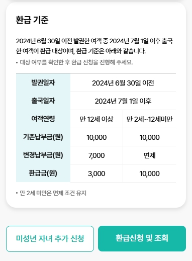 | 환급 대상 | 2024년 6월 30일 이전 발권 & 7월 1일 이후 출국 |