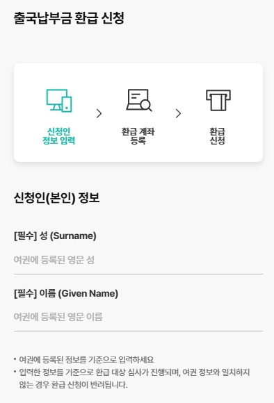 2. 출국납부금 환급서비스 홈페이지 신청 방법