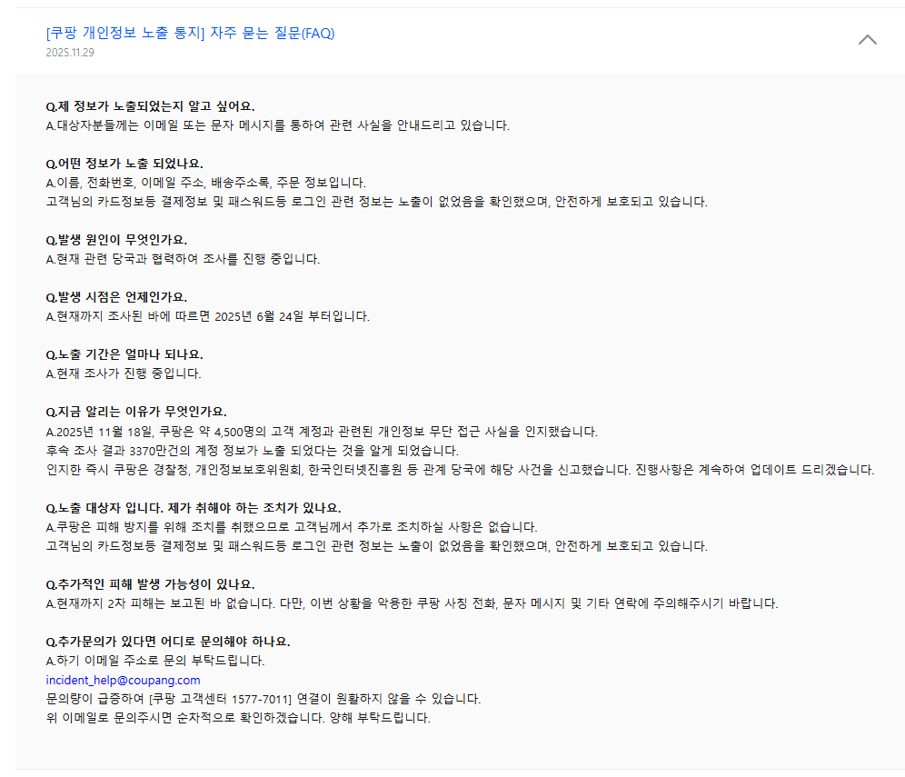 2025년 11월, 국내 최대 이커머스 기업 쿠팡이 대규모 개인정보 유출을 공식 인정하면서,