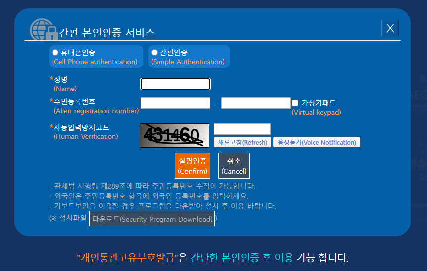 - 통관번호 유출 의심되면 즉시 재발급