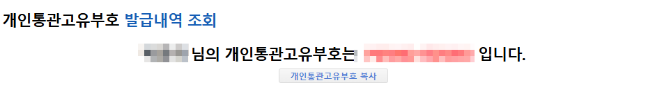 인증이 완료되면 현재 사용 중인 개인통관번호가 뜹니다.