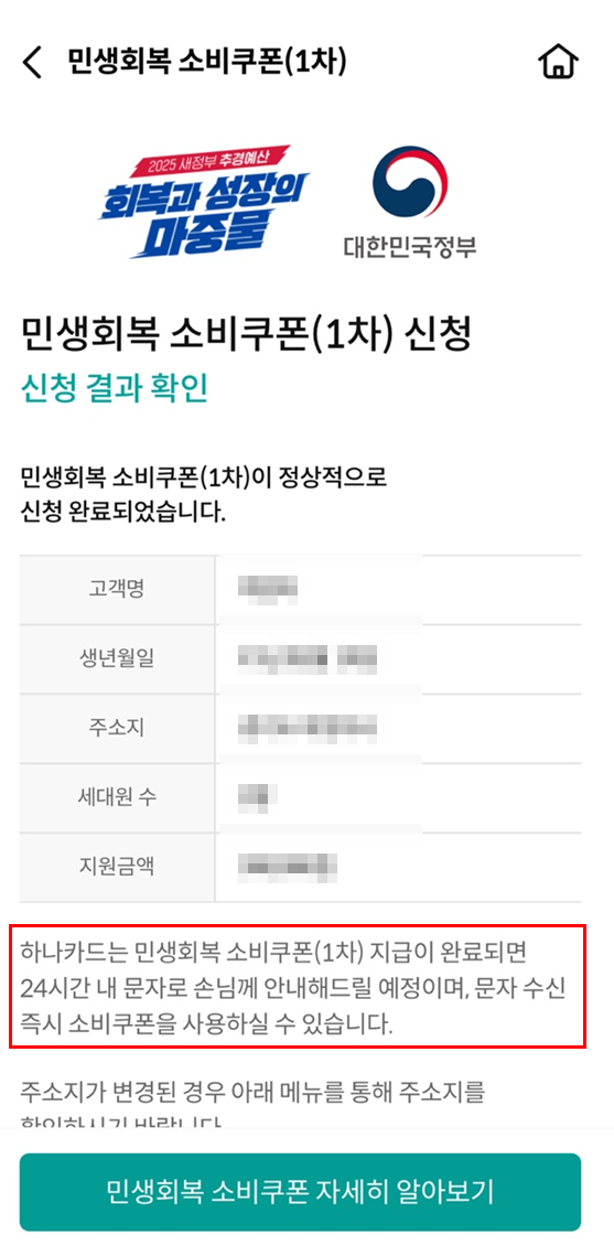 *24시간 내 문자 안내 예정, 문자 수신 즉시 소비쿠폰 사용가능!
