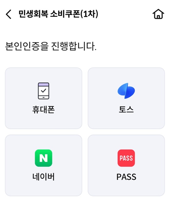 2. 메인 화면에서 "민생회복 소비쿠폰" 메뉴 진입