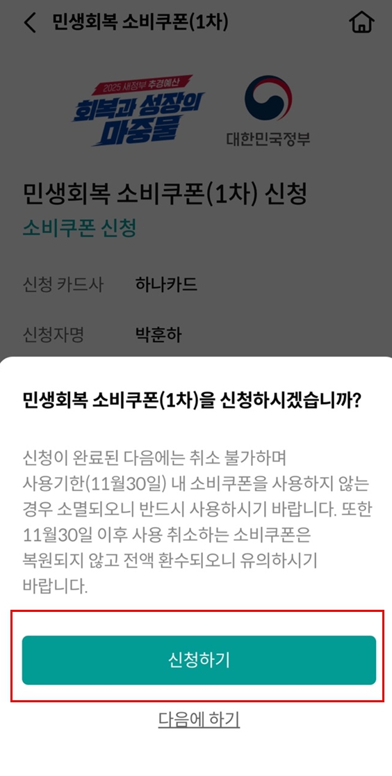 2. 하나카드 민생회복 소비쿠폰 신청방법