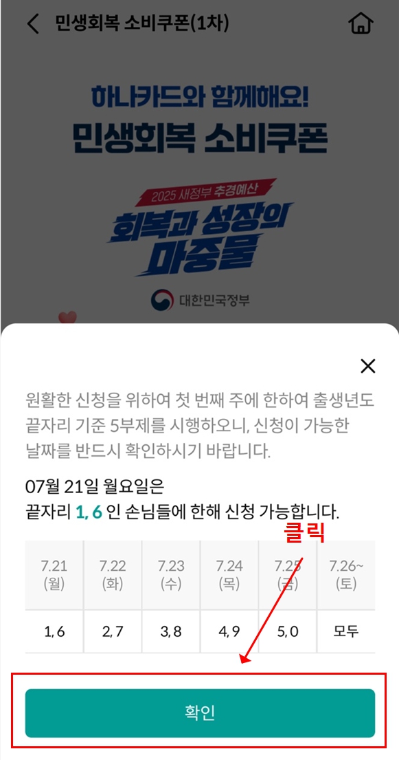 1. 하나카드 민생회복 소비쿠폰 신청 일정 & 5부제 안내