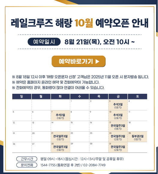 ✅ 지금 레일크루즈 공식 홈페이지에서 일정 확인