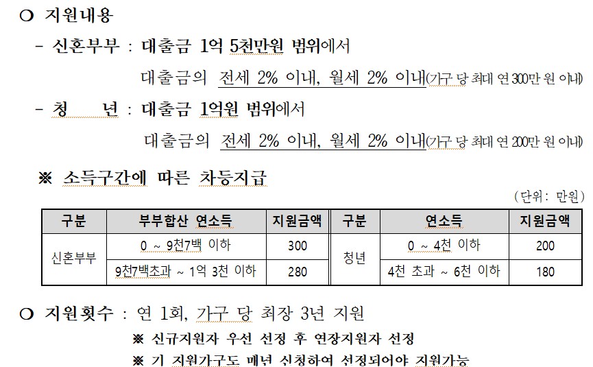 이번 사업에서는 지원 한도를 2배로 상향하며, 청년과 신혼부부가 더 많은 혜택을 받을 수 있도록 했습니다.