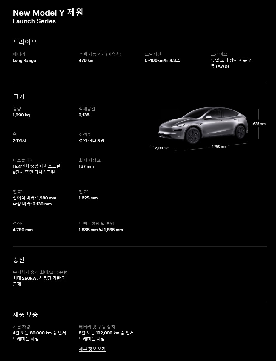 평균 약 180~200만원대 초 정도 나온 만큼 신형 모델Y도 이와 비슷하게 책정될 가능성이 높을 것으로 보임.
