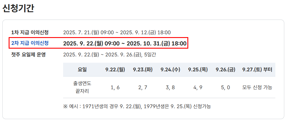 - 지급 기간: 2025년 9월 22일 ~ 10월 31일