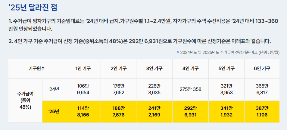 2025년 주거급여는 물가 상승과 주거비 부담을 고려해 기준이 대폭 개선되었습니다.