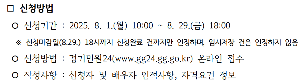 - 신청 방법: 경기민원24 홈페이지에서 온라인 접수