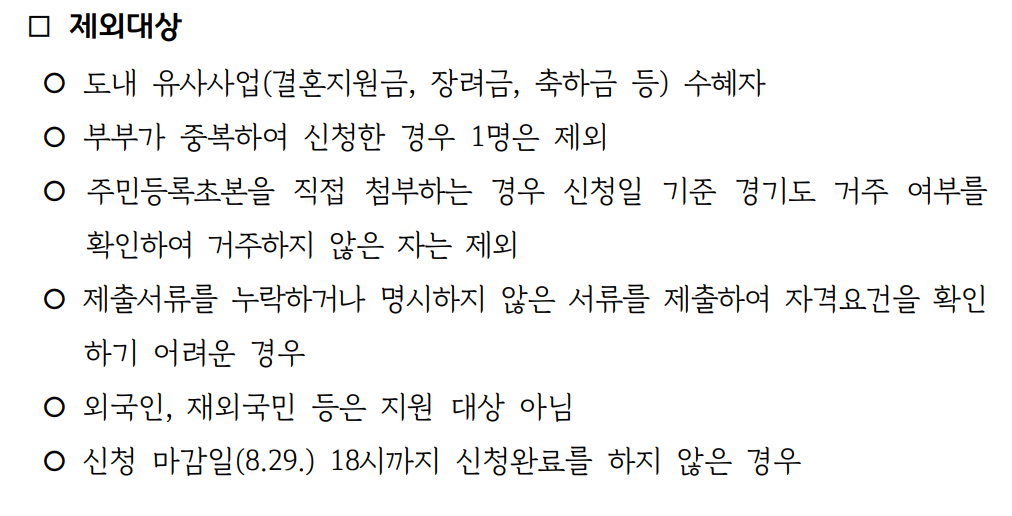 - 유사 지원 수령자 제외: 다른 결혼 축하금, 장려금 이미 수령 시 불가