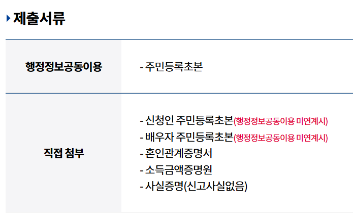| 혼인관계증명서 | 반드시 8월 1일 이후 발급본 |