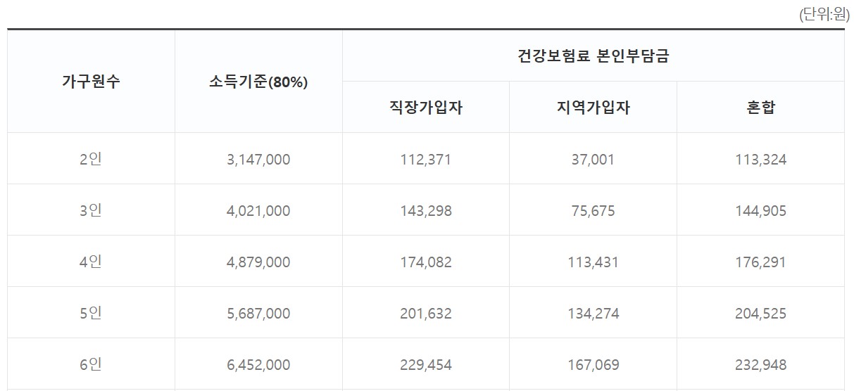 | 소득기준 | 기준 중위소득 80% 이하 (4인 가구 기준 월 약 436만원 이하) |