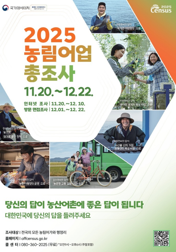 2025년 농림어업총사는 11월 20일부터 12월 22일까지 진행되는 5년 주기의 전수조사입니다.