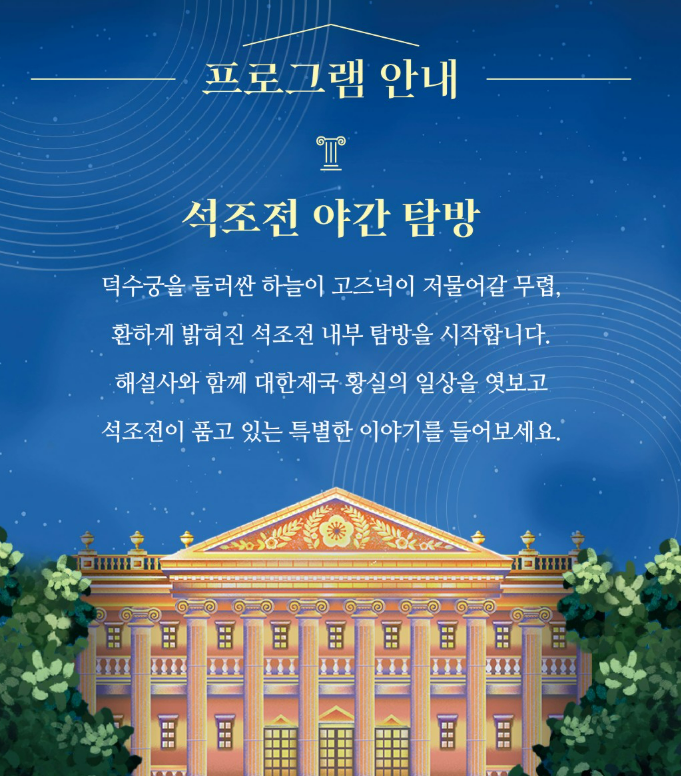 “올가을, 고즈넉한 궁궐 속에서 즐기는 90분의 감동 – 덕수궁 밤의 석조전 예약은 지금부터 준비하세요!”