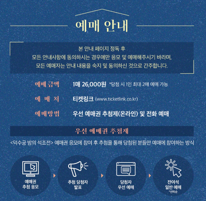 | 응모 기간 | 8월 20일(수) 14:00 ~ 8월 26일(화) 자정 | 티켓링크 사이트 |