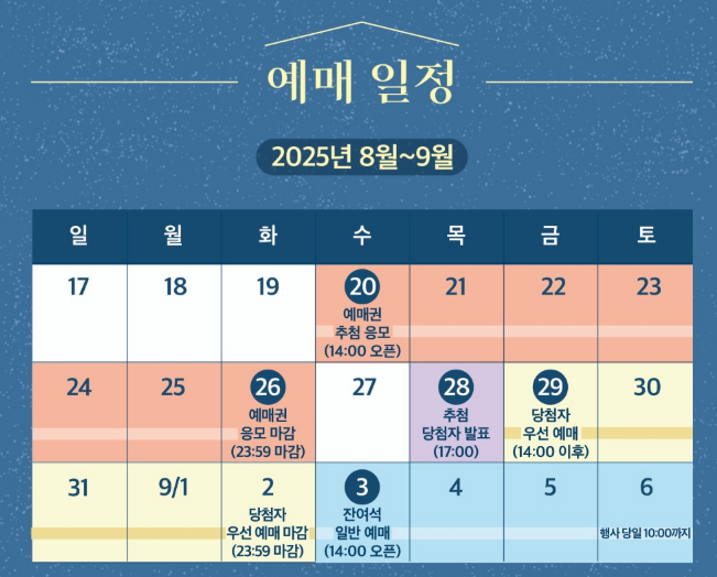| 당첨자 예매 기간 | 8월 29일(금) ~ 9월 2일(화) | 미결제 시 자동 취소 |