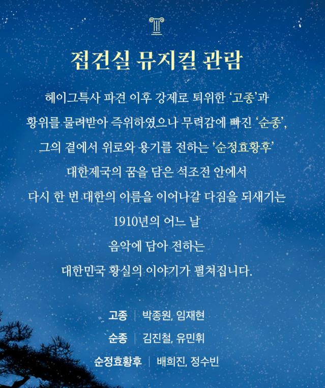 - 접견실 무대에서 진행되는 대한제국 배경 창작 뮤지컬