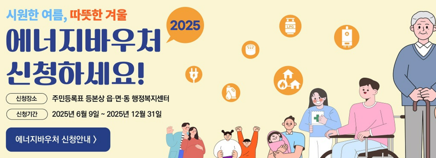 2025년 에너지바우처 사업 신청이 6월 9일부터 12월 31일까지 진행됩니다.